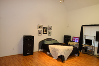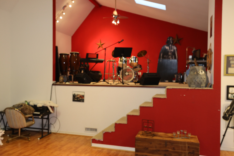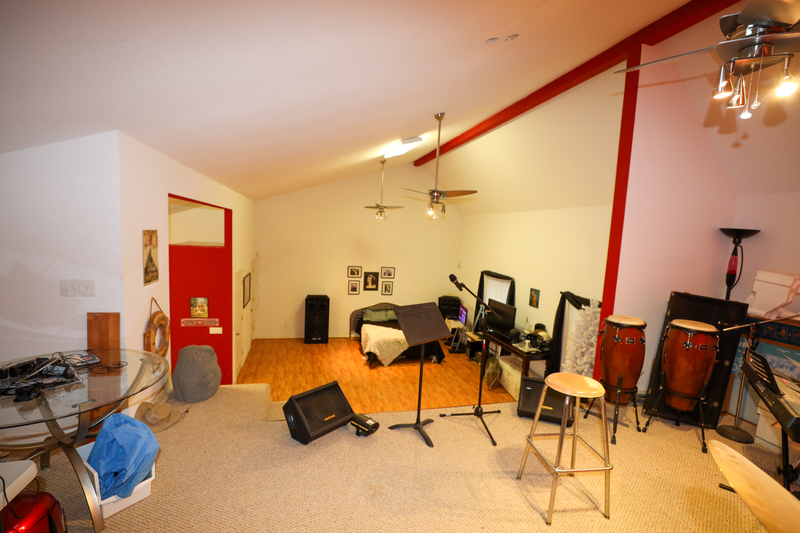 Game Room with Hidden Loft: A large wood-paneled game room features pool table, ping-pong, foosball, media space, large closet, and hidden loft.