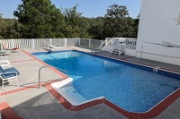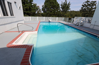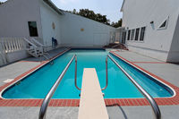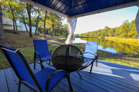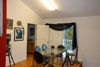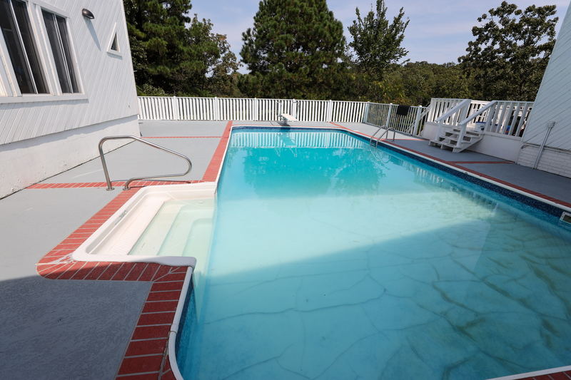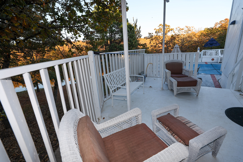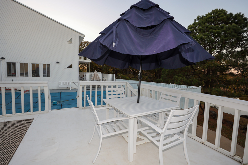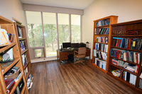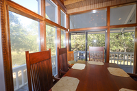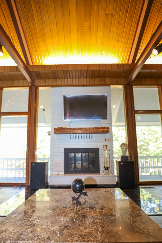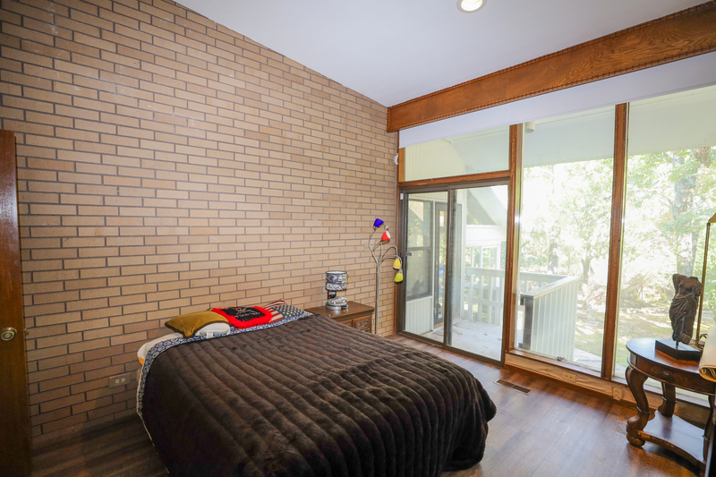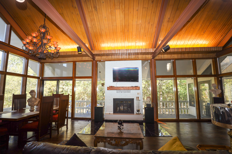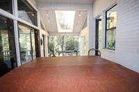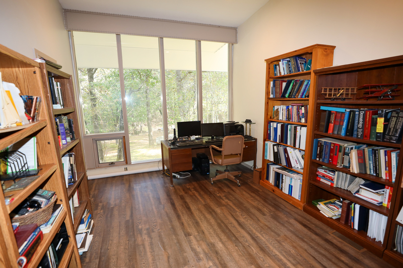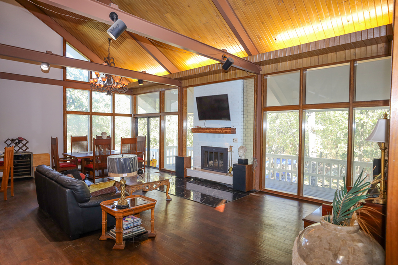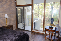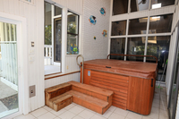 Massage Room / Jacuzzi: A 12-person enclosed Jacuzzi occupies the former massage room — overlooking forest views. Decks connect the bedrooms and lead outdoors to the pool and pond and shaded sitting areas without entering the main house.
