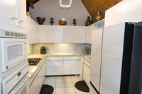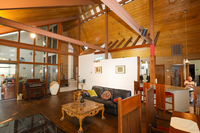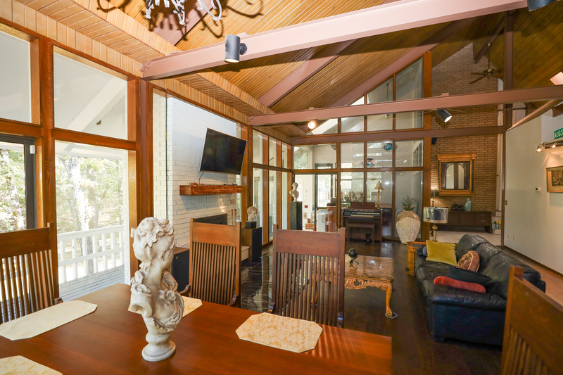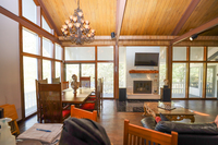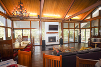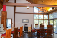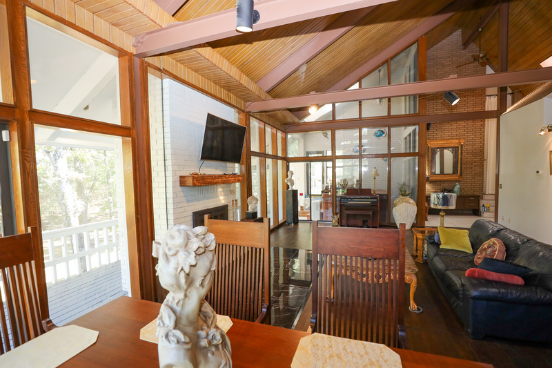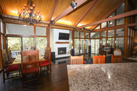 Kitchen & Great Room: The recently upgraded kitchen with modern appliances, original custom cabinets, features clear views of both the forest and front-yard landscape. The Great Room features an upgraded fireplace, Wright Foundation approved furniture, and floor-to-ceiling windows offering year-round views of nature.