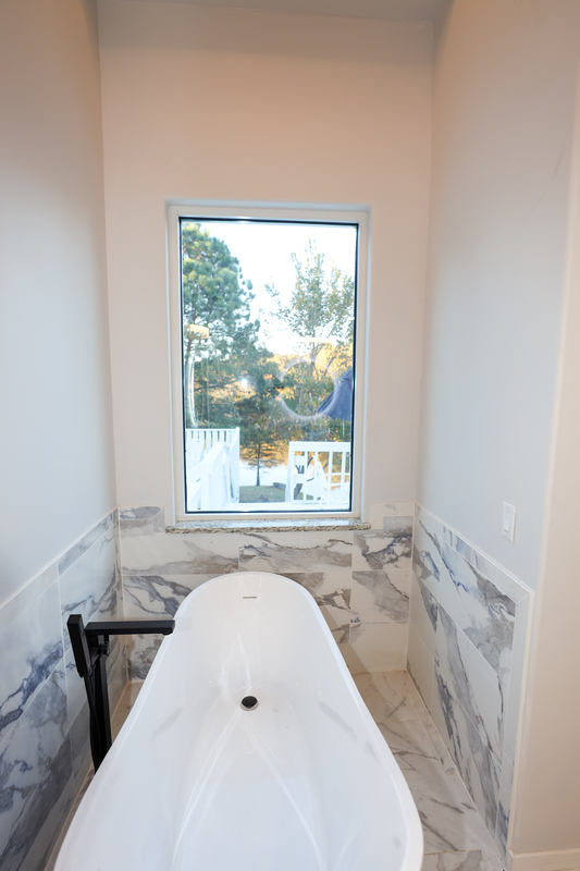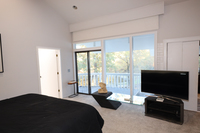 Master Suite: The master bedroom adjoins a new spa bathroom that includes granite finishes, heated floors, waterfall shower/steam room, and a Swedish soaking tub overlooking the pond and trees.